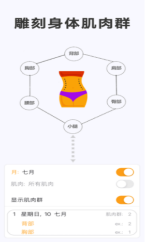 1.会追踪用户的健身计划,用户今天锻炼的肌肉群,以及用户锻炼的总次数。