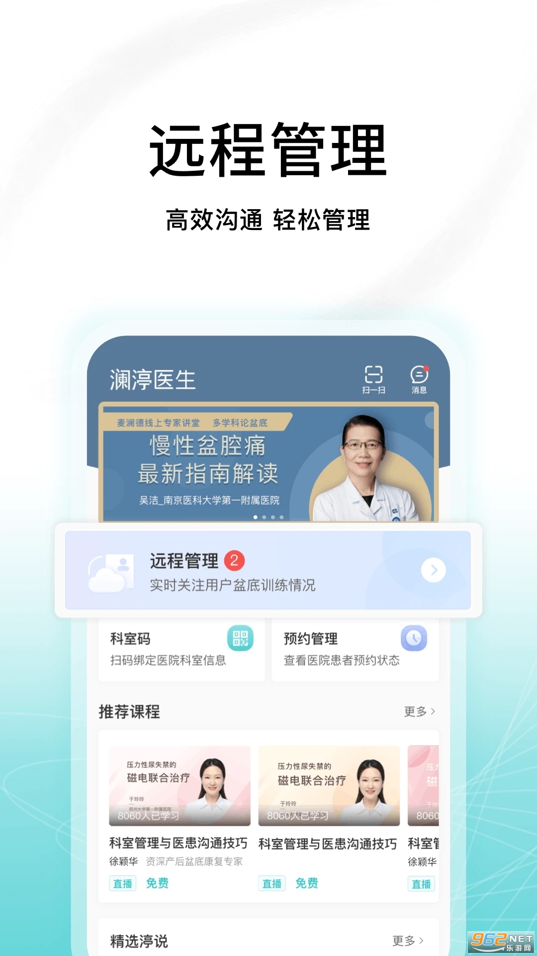 《澜渟医生app》是一款为盆底医务工作者打造的职业赋能平台,同时也能为用户提供专业的线上医生诊疗帮助,包含文字、视频、直播、论坛等形式的使用指导和问题答疑,还有业界权威的GMAA国际孕产健康学术联盟持证顾问实时跟进,指导正确训练,为盆底医务工作者提供了全面支持,也为用户带来了规范化的盆底康复服务,值得相关从业者和有需求的用户关注。