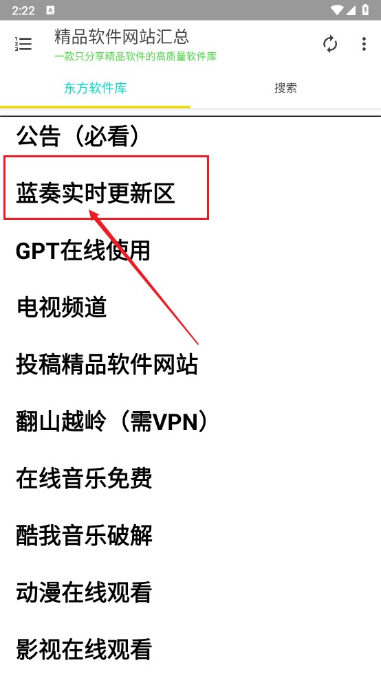 1、先在本站下载安装软件,一键点击"蓝奏实时更新区"进入。