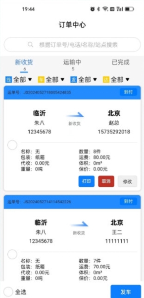 3、司机可以在订单中心查阅海量运输订单,并能根据情况接单发车