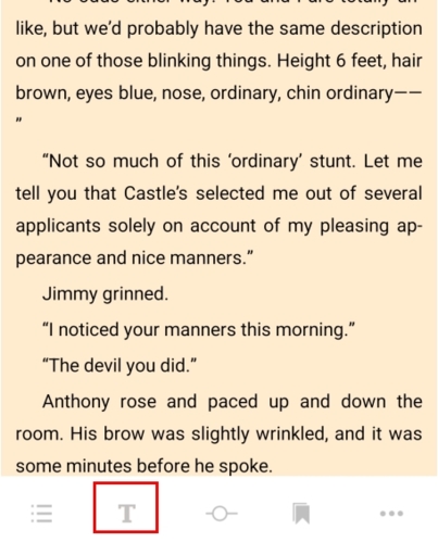 1、在阅读页面中轻点一下,在弹出的内容中点击T按钮;
