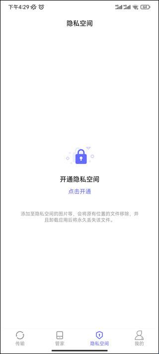 5、当然你还可以开通隐私空间,将重要的数据添加至隐私空间。