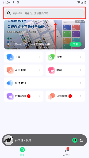 2. 在顶部搜索框输入歌曲名、歌手或关键词,秒速响应。