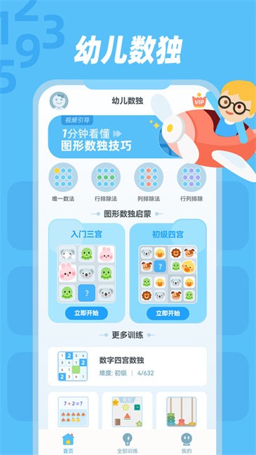 幼儿数独专为儿童设计,培养小朋友对数字逻辑、数学思维的兴趣,促进数学逻辑思维发展,为将来小学学习打下良好的基础。幼儿数独的练习内容包括图形数独和数字数独两种形式,以及数感模块和逻辑思维模块,难度上循序渐进,不断提高宝宝的数学逻辑思维能力。