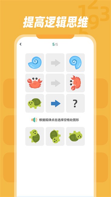 包含分类思维、图形变换、记忆大师和汉诺塔4个玩法,从图形认知分类到探索数字图形的规律,提高宝宝的逻辑思维能力。