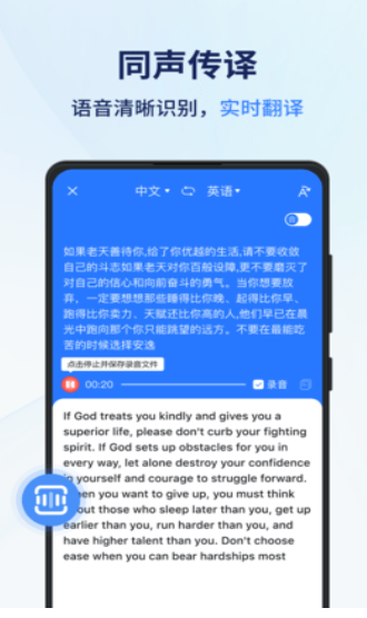 风平同声翻译器是一款多功能的翻译软件,该软件品内置了高智能翻译模块,具备同声传译、拍照翻译、口语陪练、语音翻译、文档翻译、音频翻译和视频翻译等功能,翻译准确率高,处理速度快。同时产品还包含了多种办公小工具以及还能通过拍照、文件和视频的方式分别进行翻译,是一款简单易用的翻译app。