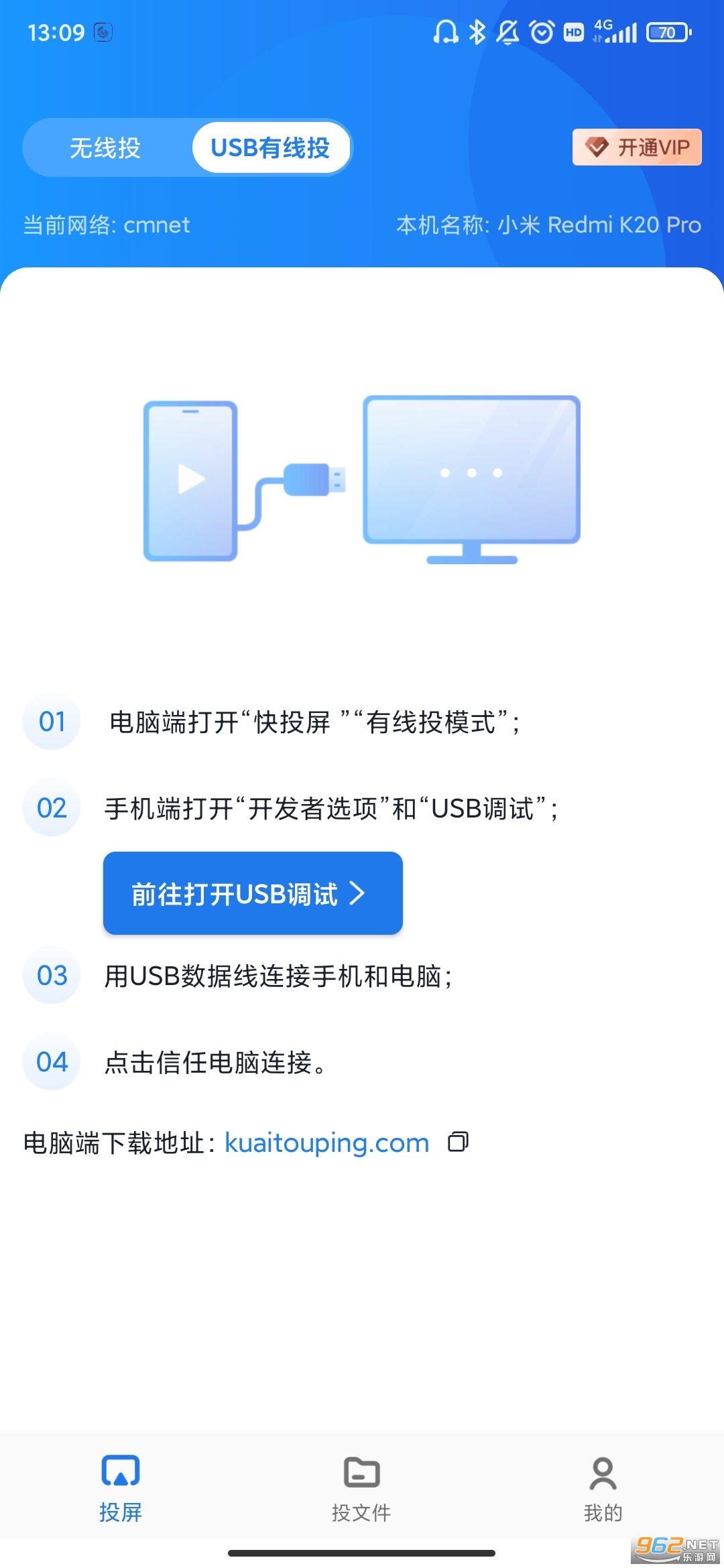 1、安卓手机和电视同时打开快投屏(支持WIFI投屏和远程云投屏)。