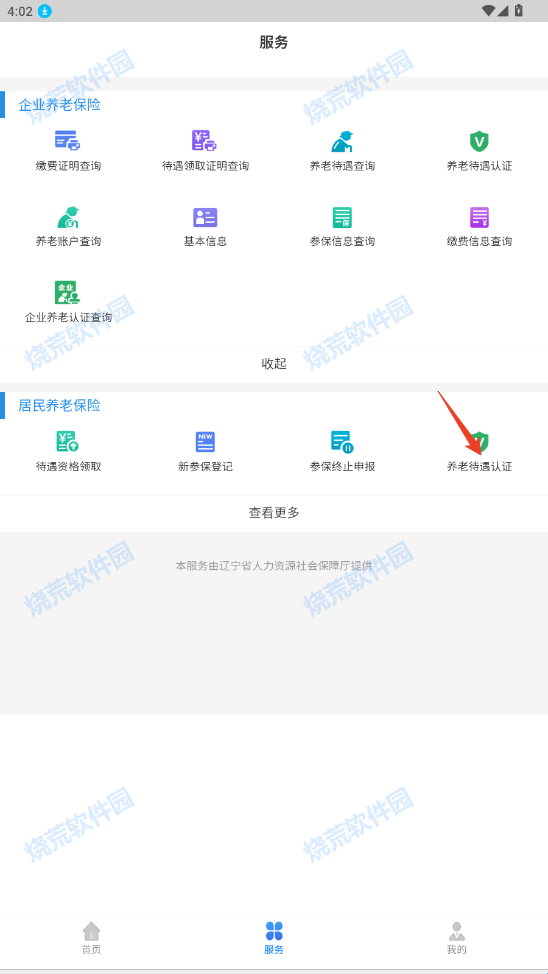 2、进入服务板块点击养老待遇认证注册登录即可查看