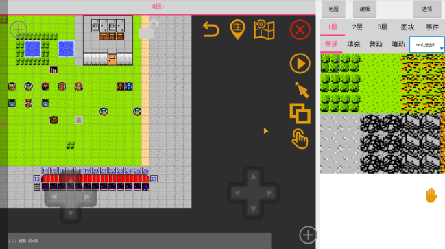 4、双指可以放大缩小,手指轻点地图图块可以选中,也可以使用左边的方向键精准选中某一个图块