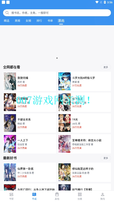 1、进入应用主界面,先进行一本小说的搜索添加,该平台同时支持小说与漫画阅读。