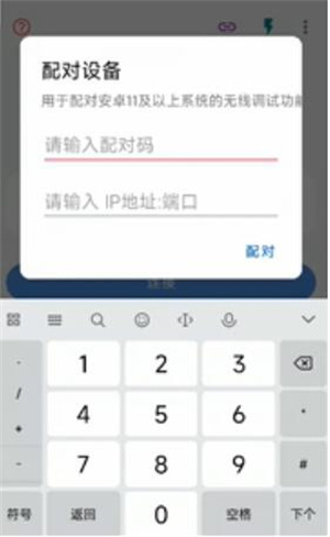 5、也可以点击使用配对码配对设备”,然后点击甲壳虫ADB助手中的连接按钮”使用配对码进行连接。