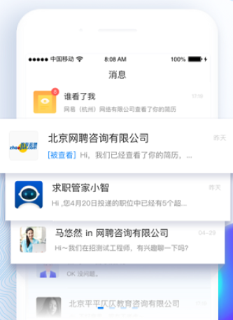 智联招聘以技术与服务双重保障用户求职体验。其智能推荐算法深度分析你的简历与偏好,精准推送更合适的岗位;直约HR”功能跳过冗长流程,实现快速面试邀约;同时提供隐私保护机制,支持屏蔽特定企业,确保你的求职信息仅对目标公司可见,全方位守护你的职业隐私安全。