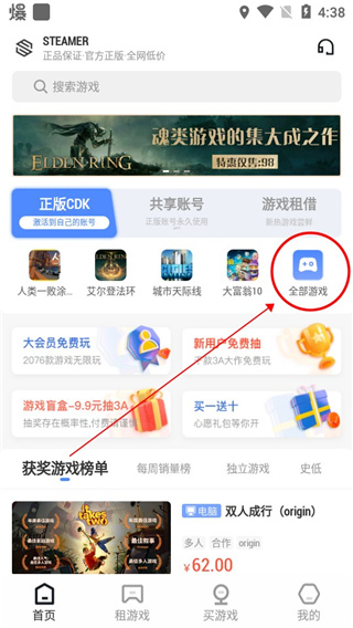 价值几百上千的游戏低成本按天按年借着玩。