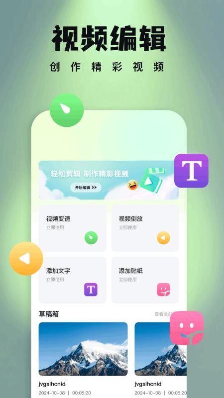 1、编辑功能齐全易用,应用集成视频剪辑、倒放、滤镜添加、贴纸文字编辑及格式转换等多样化工具,满足个性化创作需求。
