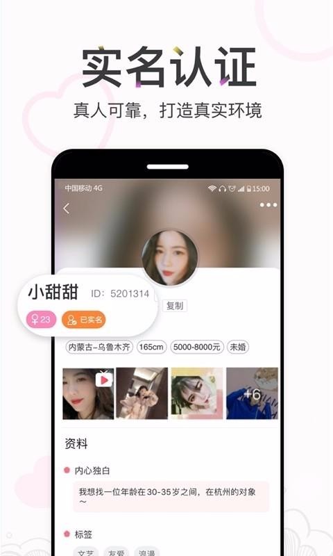 牵象app是一款社交软件;这里致力于为众多的单身男女提供更加安全的相亲平台,可以让你及时有效的找到另一半;这里的用户都要经过实名认证,认证之后才可以进行交友,可以有效的维护个人信息安全。