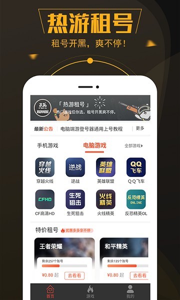 热游租号致力于让游戏热爱者体验感受高级虚拟物品带来的快乐,为广大玩家提供优质的手机游戏、电脑游戏等游戏的租号借号服务,热门游戏任你选,租号开黑爽不停!