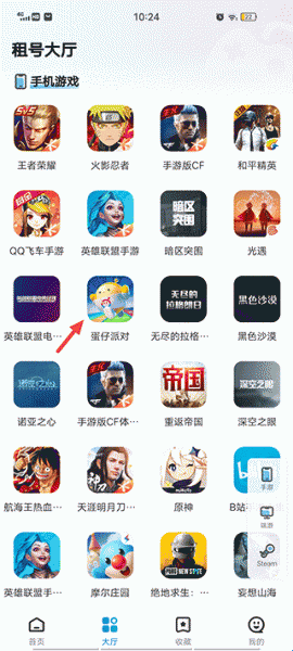 1、进入软件注册登录后,在“租号大厅”选择想要租的游戏类型。