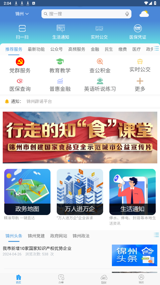 《锦州通app》是专为锦州当地市民朋友们打造的生活服务软件,城市智能门户平台,为用户提供了众多的功能与服务,政务办事,便民服务,实名认证,社保服务,公积金服务,教育教学等等,让大家可以第一时间了解本地的大小事,不出门就可以掌上办事,享受智慧生活,有需要的话就来下载吧!