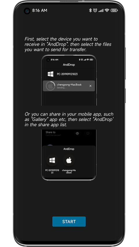 1、如图,AndDrop区分mac端与Windows端,但是都大差不差,只需要在电脑上打开分享的相关功能等待连接即可