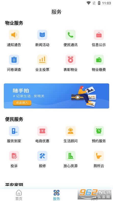 具有在线报修、在线投诉、在线缴费、在线投票、手机一键开门、电梯救援等功能