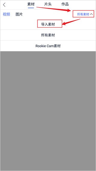 2. 在素材库中点击【所有素材】,选择【导入素材】。