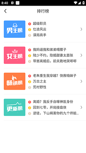 今日小说是一款非常全面的小说阅读软件,在这里用户可以自由查看各种小说榜单和排名,其中有玄幻的,有都市的,有恐怖的,有惊悚的,有爱情的,有历史的!与此同时,用户也可以按照自己的偏好来设定自己的阅读环境。