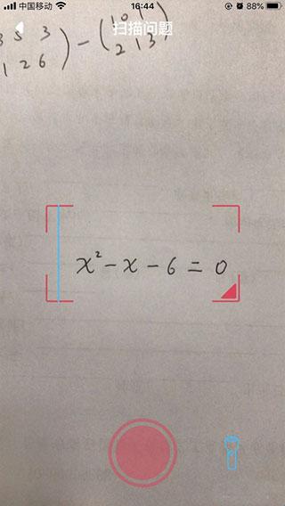 3、打开手机摄像头,将题目置于屏幕提示的区域内,然后点击下方的红色按钮;