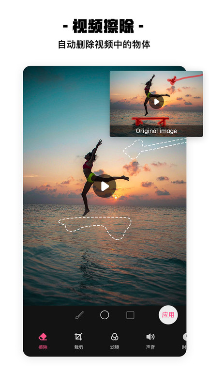 4.快速去除视频中的水印、字幕等logos支持AI自动消除和手动选框消除;