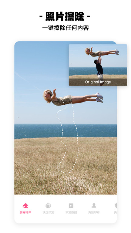 2.照片一键传到路人手中,通过快速涂抹情报可以消除图片中指定的logos和对象。