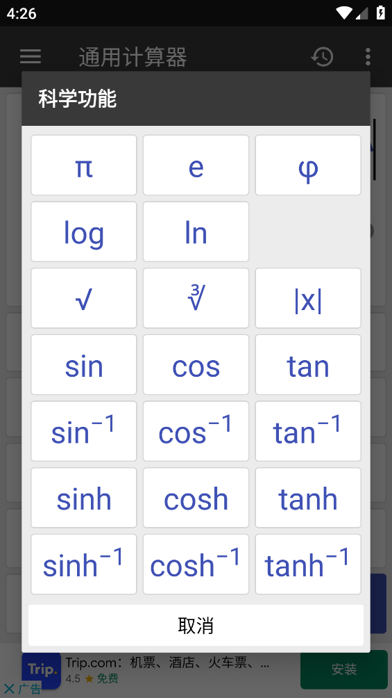 2、科学计算:三角函数、对数等,角度弧度切换;