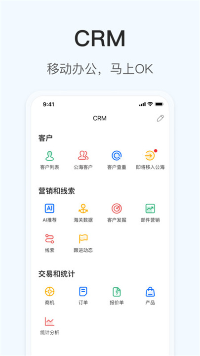 CRM管理: AI推荐客户,随时管理业务,快速录入动态。
