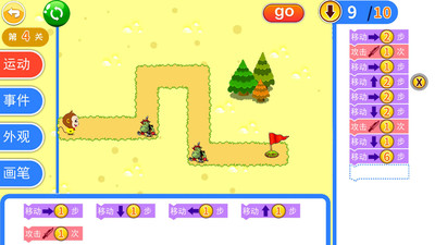 5、方块放置好后点击【go】,小悟空就会向前前进一步