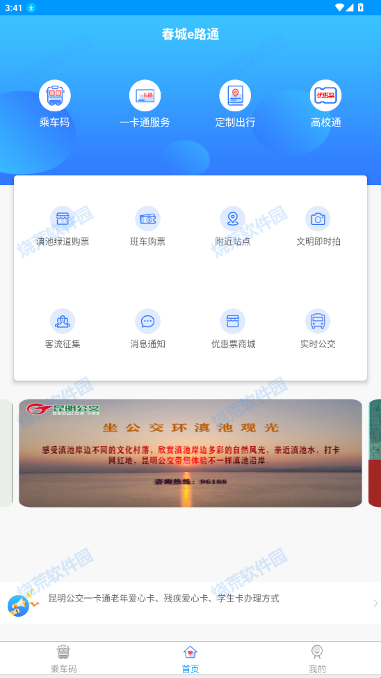 1、在烧荒下载好“昆明公交实时查询app(春城e路通)”点击进入