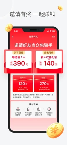 美团众包安卓版是一款外卖配送兼职软件,在软件中有大量的订单需要培养,可以利用自己的闲暇时间在线接受附近的外卖配送订单,您只需完成注册即可开始兼职送货工作,有需要的朋友千万不要错过。
