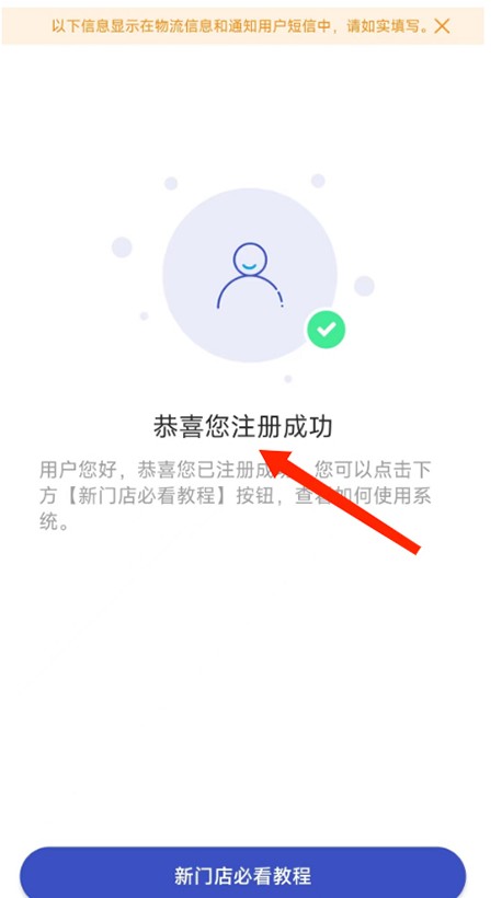 5、注册成功后,系统将提示恭喜您注册成功”,表明开店账号已创建完成。