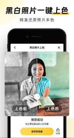 修复照片破损模糊,大幅提升清晰度;基于大量真实案例,准确还原照片颜色