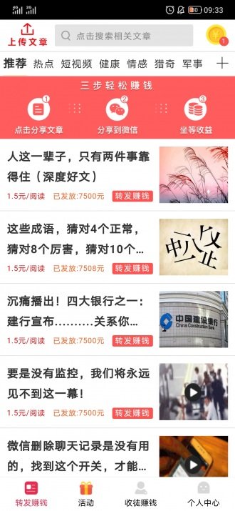 随时随地阅读了解新鲜事、生活大小事,将自己喜欢的文章分享出去还可赚取收益,