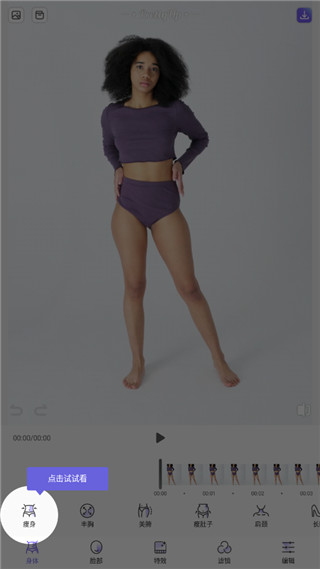 1、一秒拥有纤细的腰部,大长腿和光滑动人的皮肤,身体和脸部编辑效果自然出彩;
