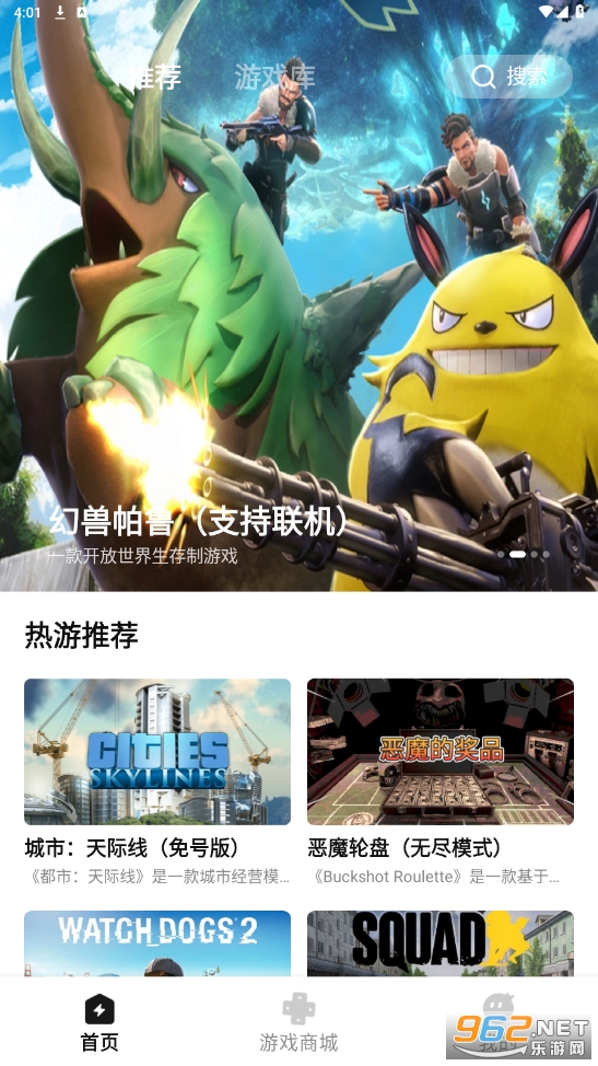 2、在首页可以看到很多热门的游戏推送
