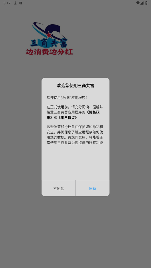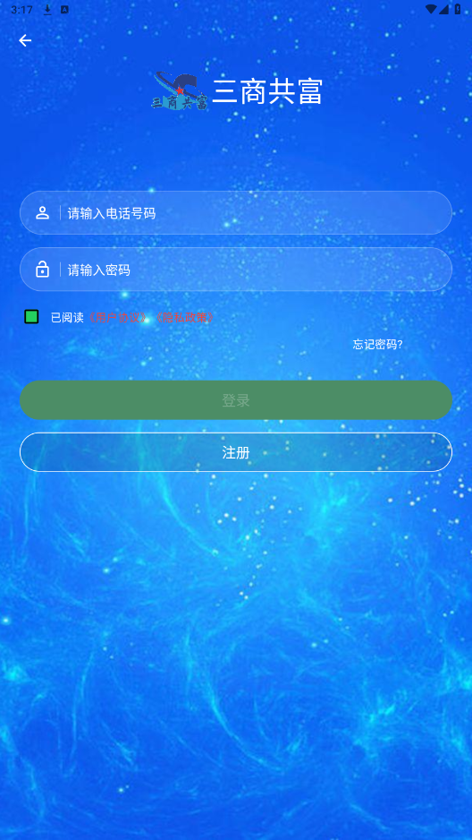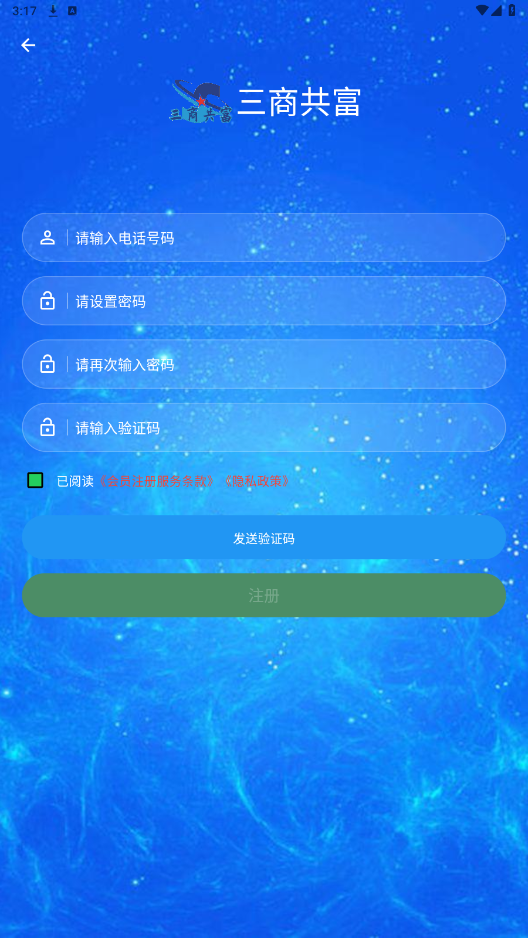 打开三商共富app,点击注册