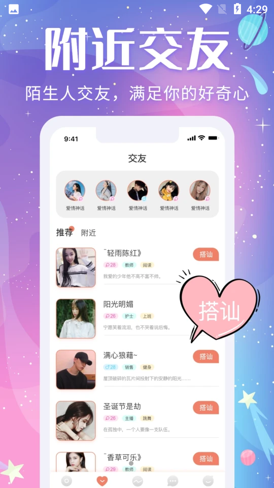 3、每一位用户都能够在APP的帮助下快速的脱单,并且为用户打造了各种各样的娱乐话题。