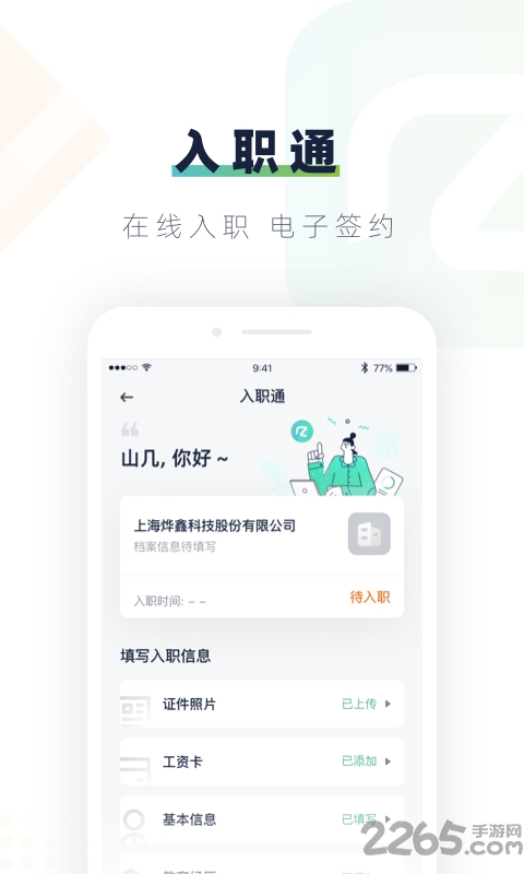 云入职,全程无接触完成入职资料提交.在线签约,提供受法律保护的电子合同.