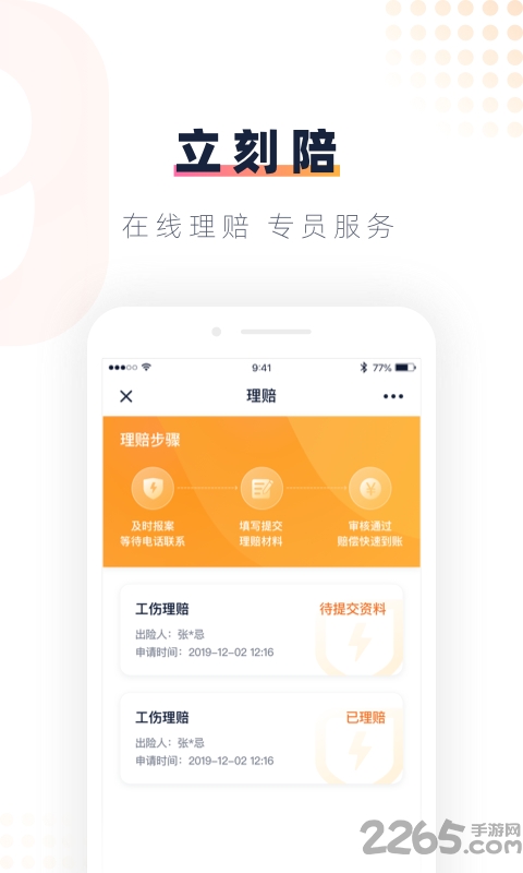 在线申请工伤理赔的话可以得到2265专员的服务