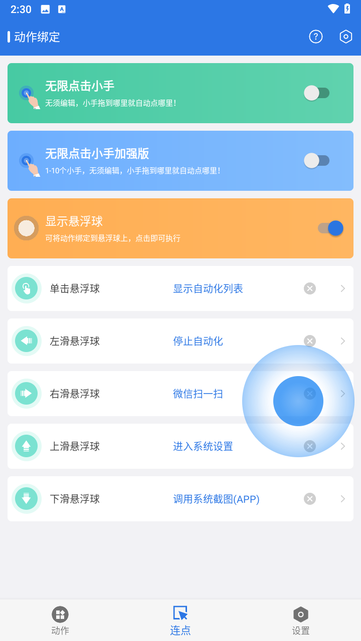 5、如需更便捷的操作体验,建议开启悬浮球”功能,随时随地触发自动化操作。