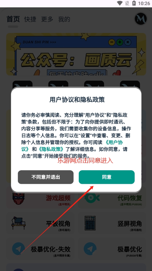 1、首先在本网站下载安装客户端,安装至手机或是PC端模拟器上,点击“同意”进入。