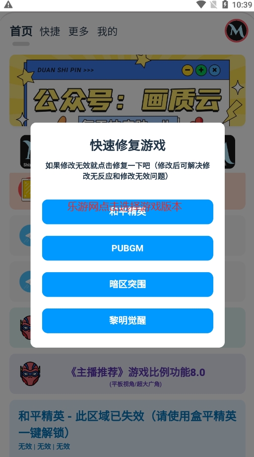 1、下滑首页,找到“快速修复游戏画质无法修改”的功能栏目。