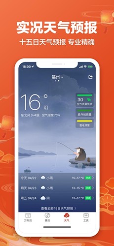 5、准确的万年日历:公历农历、实时天气、资讯文章、节气伏九、公众假日、民俗佛道节日、提醒备忘。