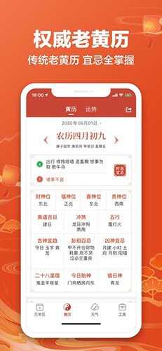 1、界面简洁实用,不冗余,凸显中国风,做优质准确的中国日历万年历;