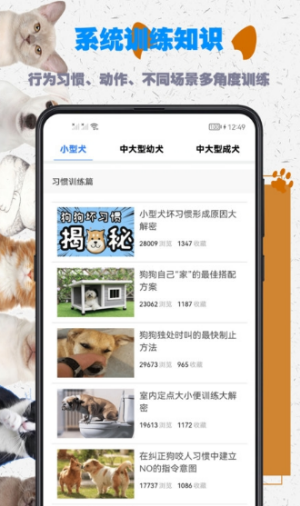 训狗教程app是一款好用的宠物训练软件。该软件详细教导各种宠物训练方法,帮助您在最短的时间内掌握犬类训练的要点。该平台还设置了各种宠物知识和品种介绍,用户可以在这里找到关于狗的详细信息。需要的用户快来下载吧!