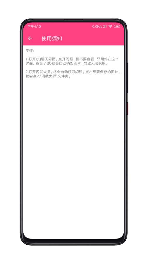 1、这是一款能够一键截取手机qq闪照的APP。